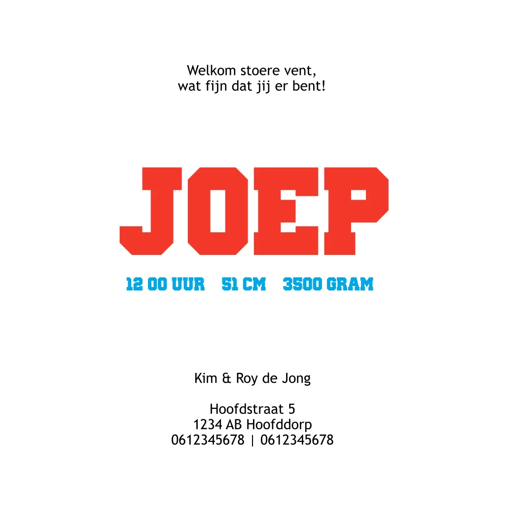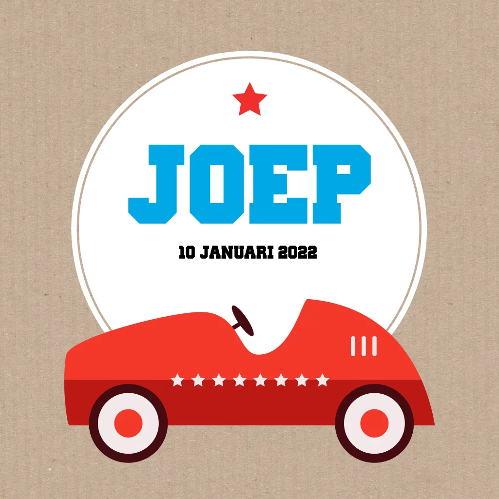 Cool! Dit geboortekaartje heeft een rode auto op de voorkant staan. Dat staat zo vrolijk en stoer! Krijg jij binnenkort een stoere bink, kijk dan eens verder naar dit babykaartje.