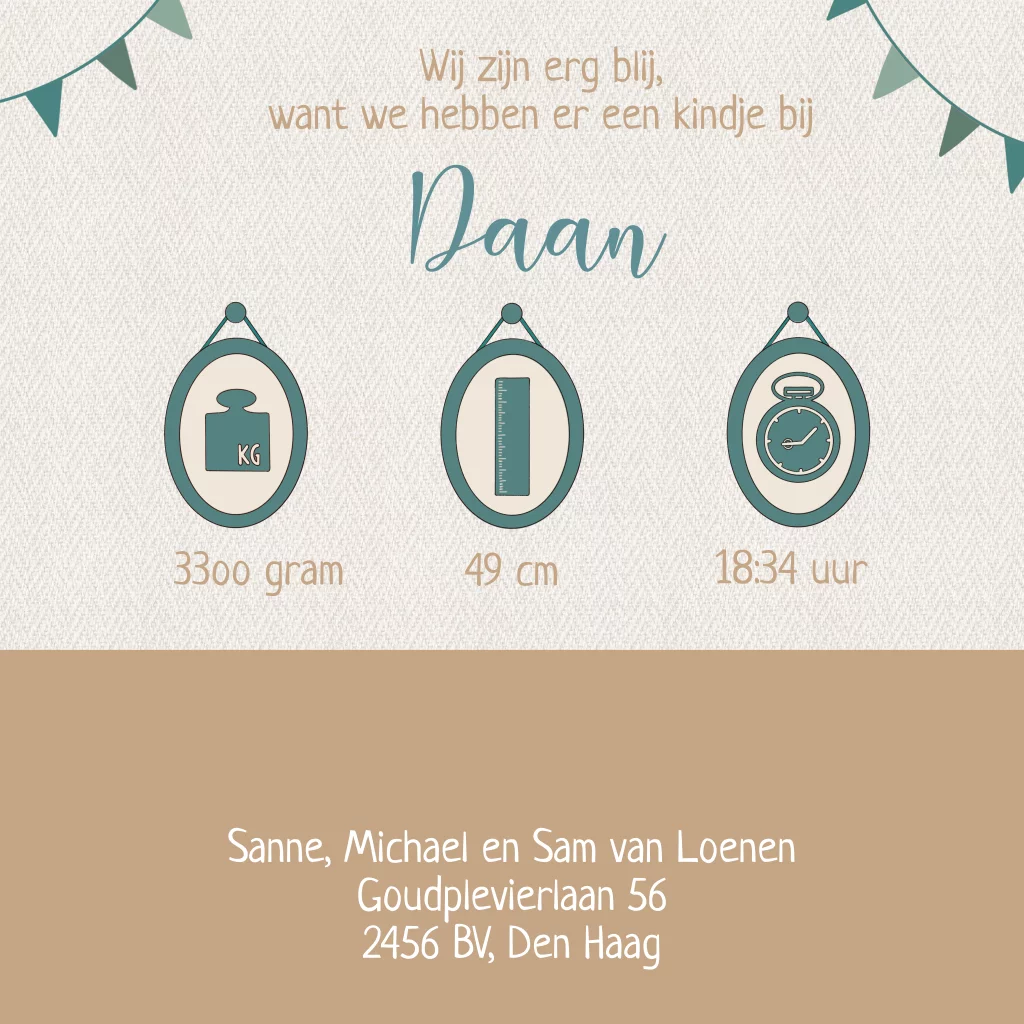 Geboortekaartje 3e kindje jongen met 2 grote broers