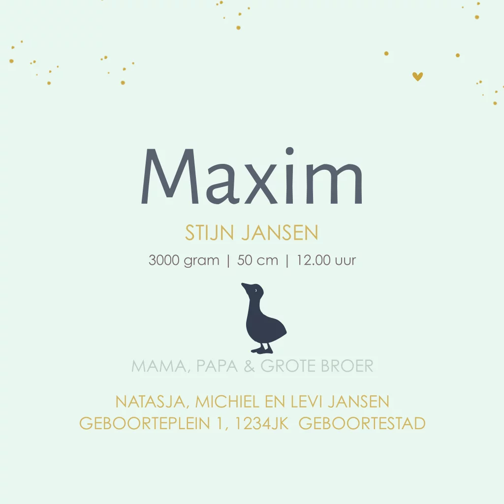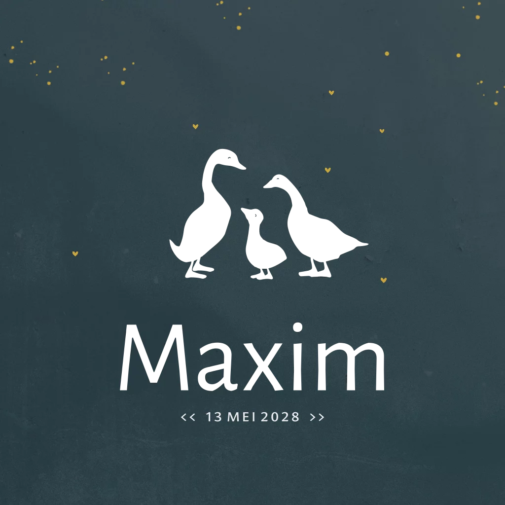 Geboortekaartje baby jongen eendjes donkergroen goudfolie