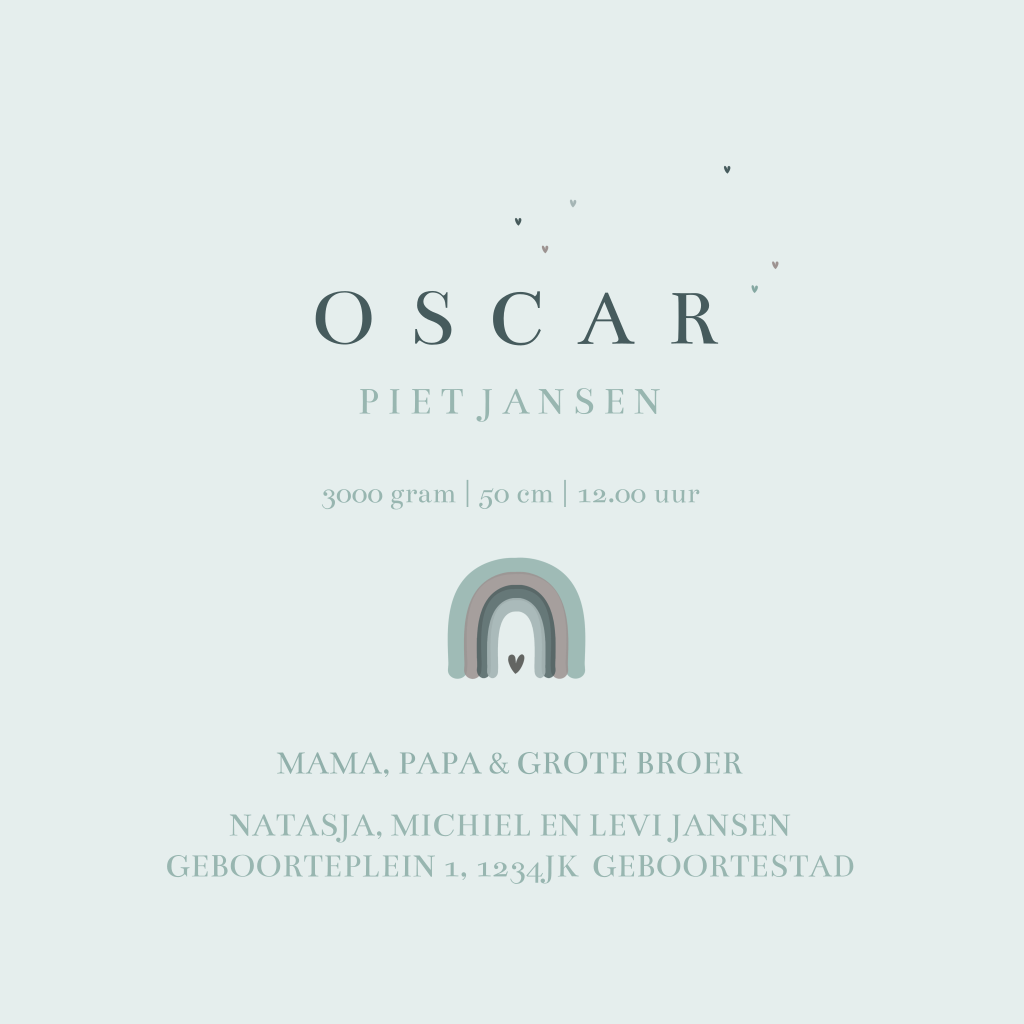 Geboortekaartje baby jongen regenboog blauw kleuren