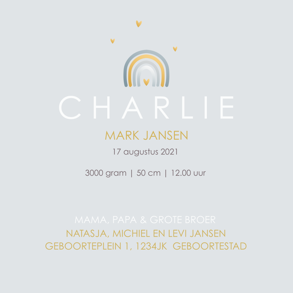 Geboortekaartje baby jongen regenboog herfsttinten