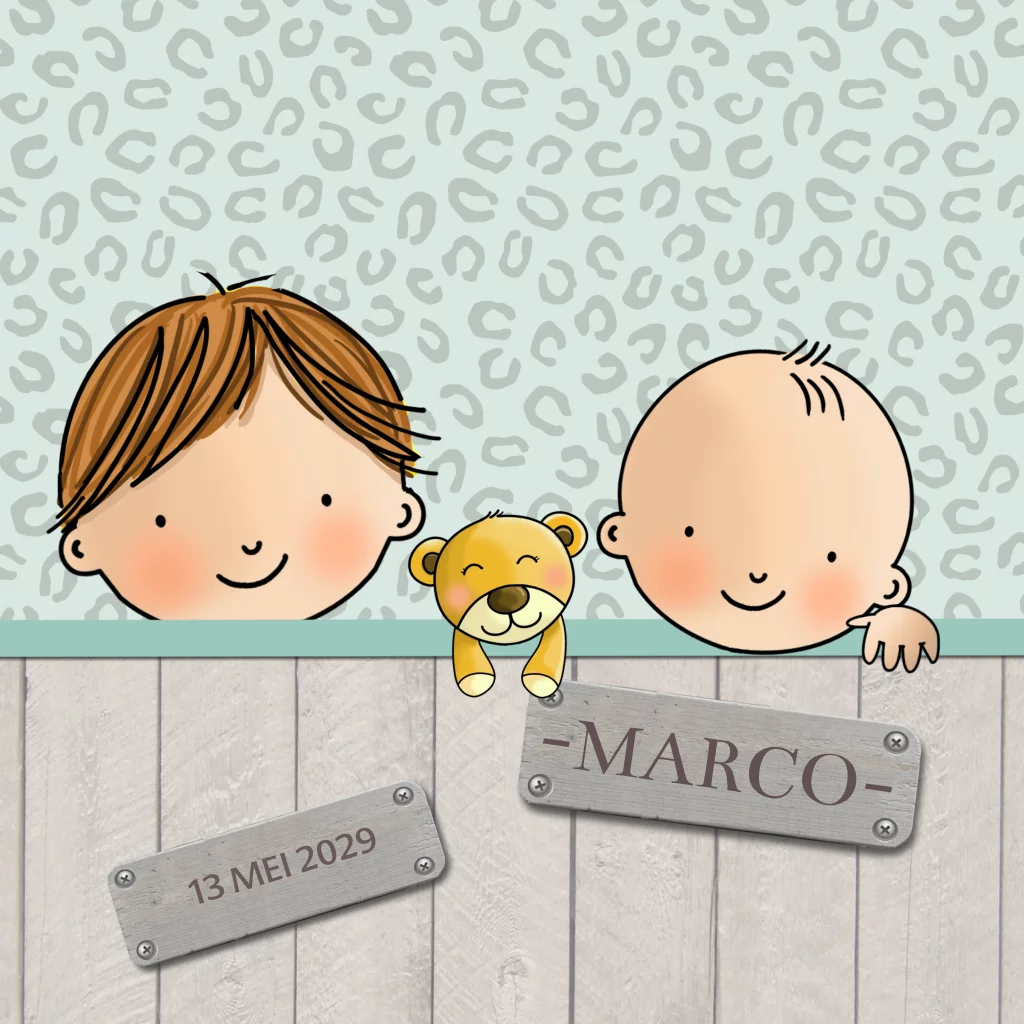Geboortekaartje baby jongen met grote broer. Sloophout met tijger. Ben je opzoek naar een andere gezinssamenstelling neem dan even contact op met onze klantenservice. We helpen je graag! (175)