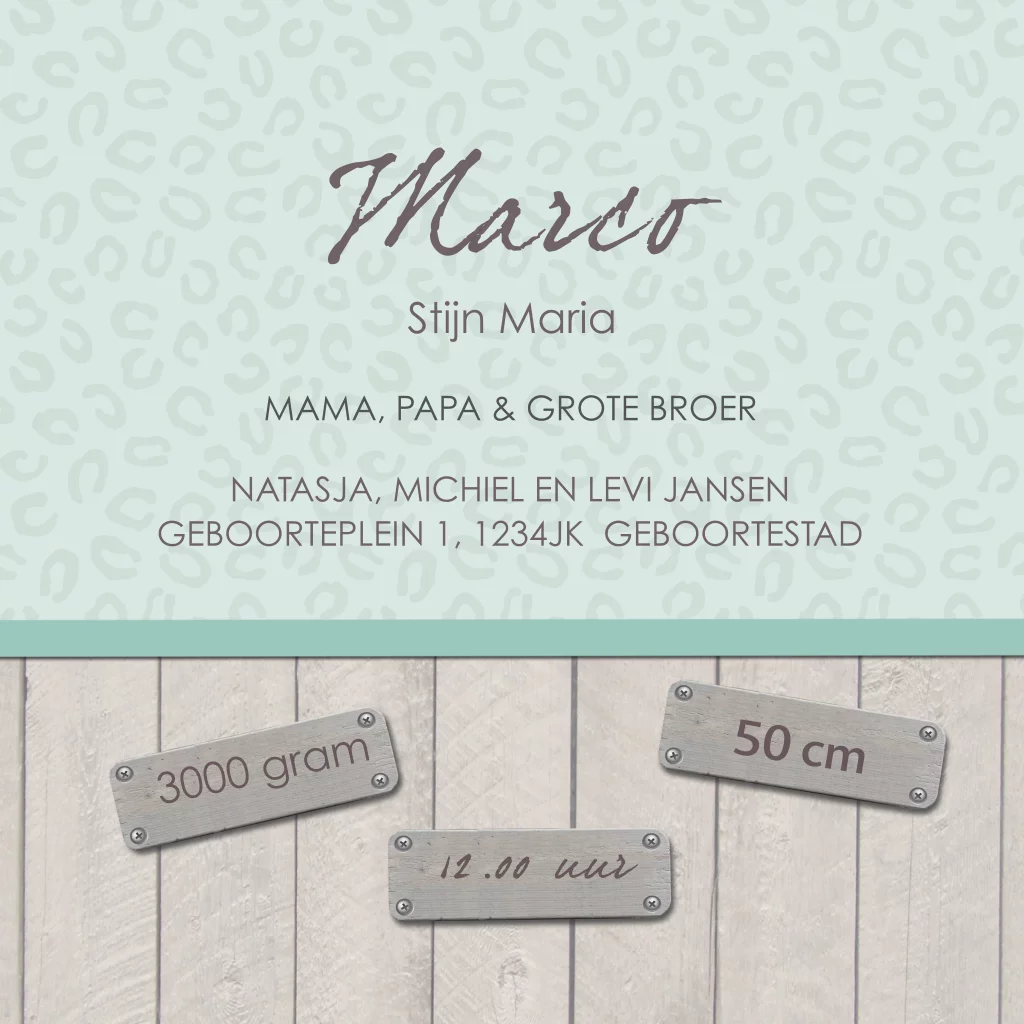 Geboortekaartje baby jongens met sloophout tijgerprint