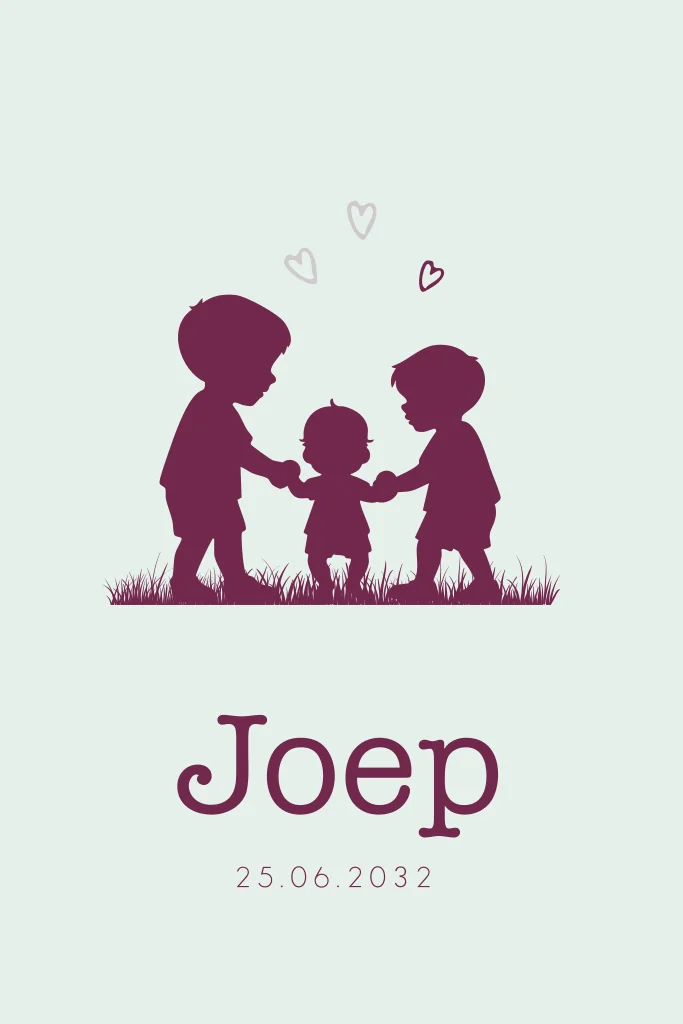 Geboortekaartje broers lopen buiten leren lopen silhouet
