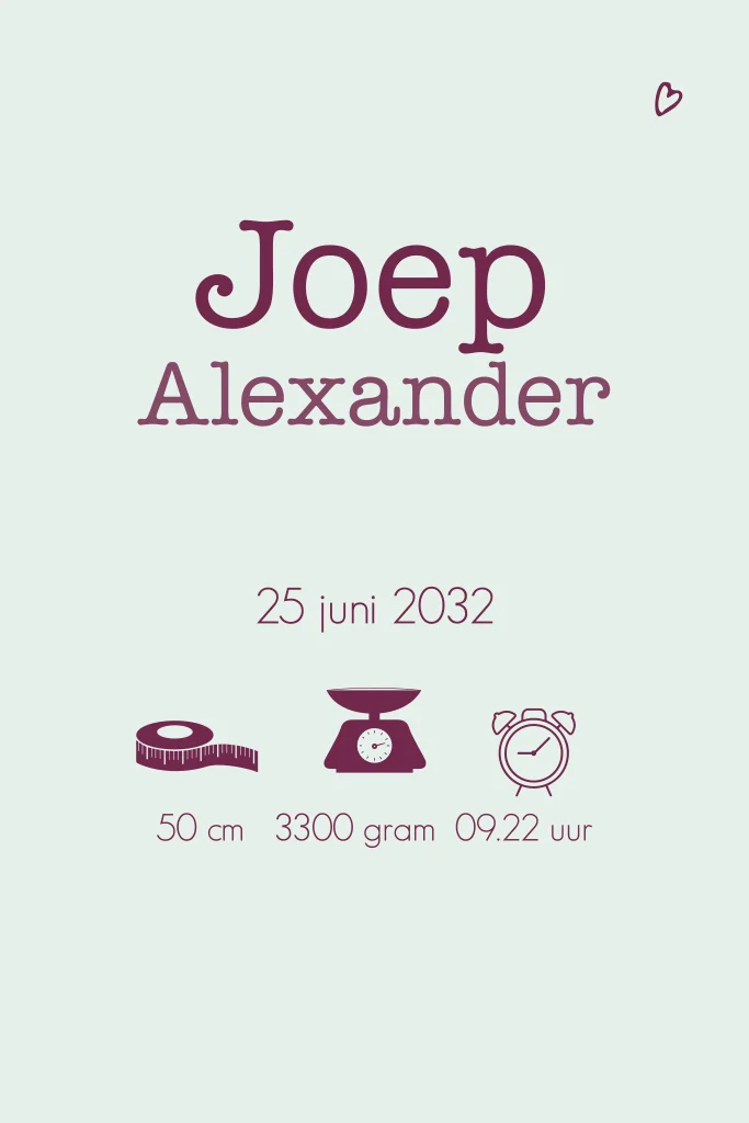 Een lief silhouette geboortekaartje in paars. Pas het ontwerp aan naar wens in onze online editor.