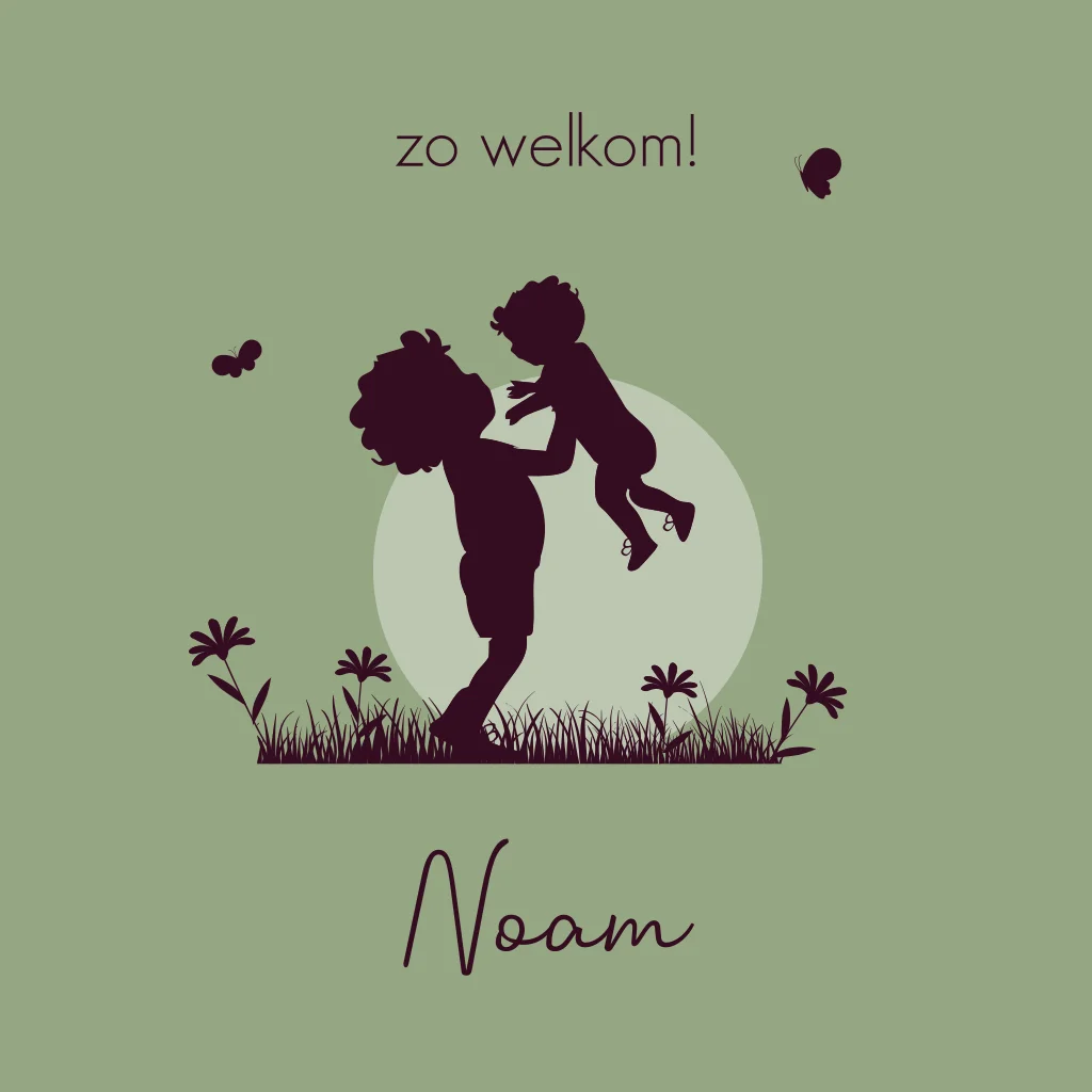 Lief geboortekaartje met een silhouet van 2 broertjes.