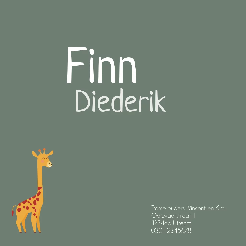 Geboortekaartje getekende giraffe jongetje
