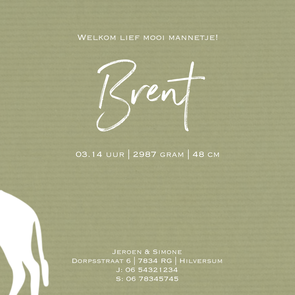 Geboortekaartje giraf jongen met echt houten sterretje. (3569) LET OP! Bij de proefdruk en eindbestelling wordt GEEN voorbeeld vormpje geleverd. Het houten vormpje op dit kaartje wordt niet mee gedrukt, deze is ter voorbeeld. Op die plek kun je straks zelf het Γ©chte houten vormpje plakken die je in het bestelproces bij dient te bestellen.