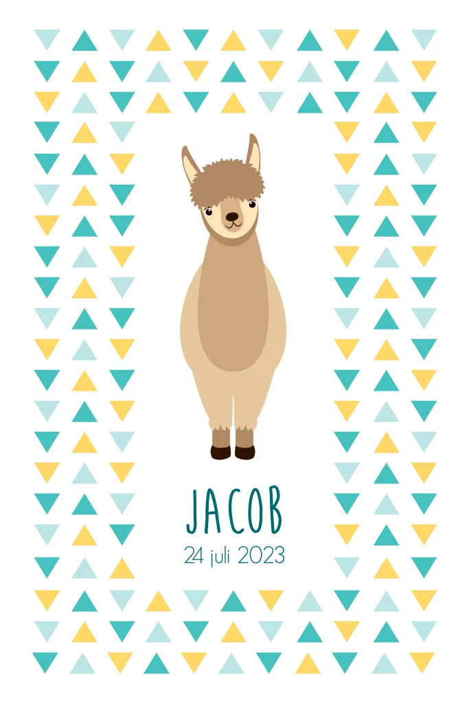 Hip geboortekaartje met alpaca voor een jongen. (3586)