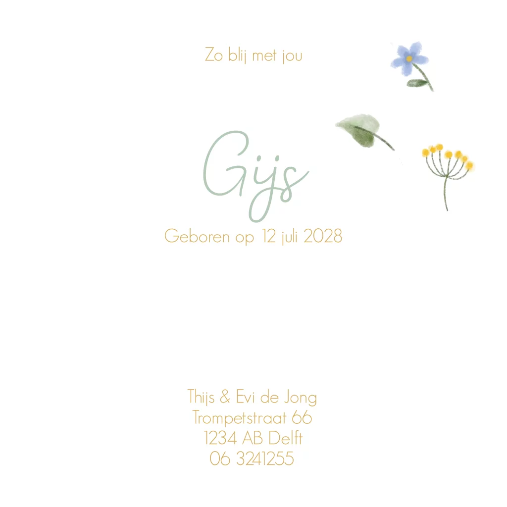 Geboortekaartje jongen bijen en bloemen