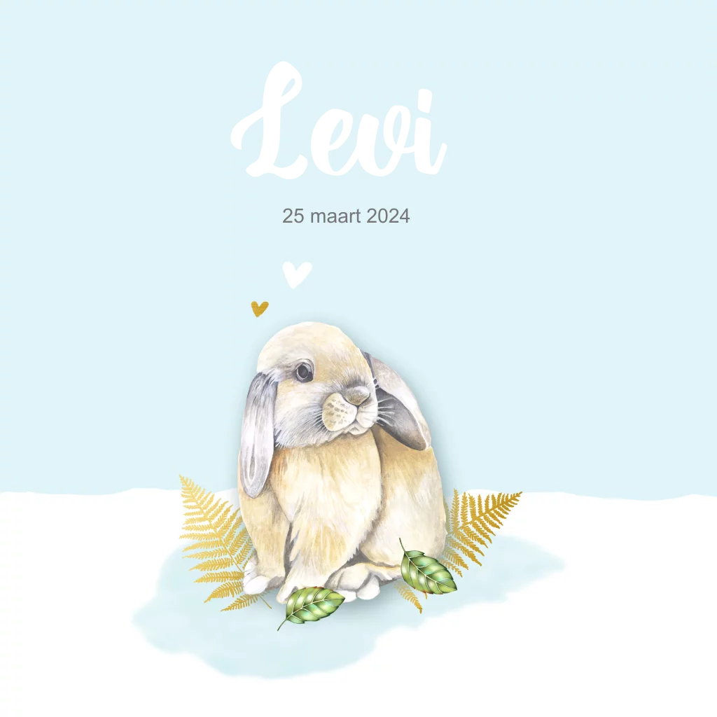 Lief geboortekaartje met konijntje en foliedruk. (4612)