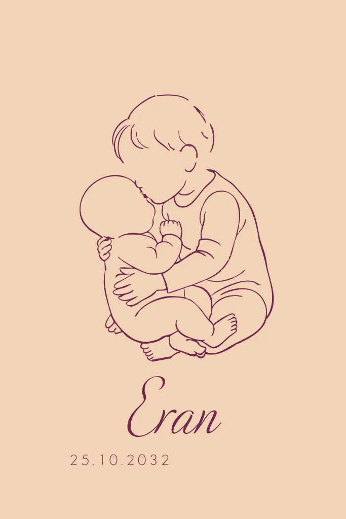 Geboortekaartje jongen broertje knuffel lijntekening kus
