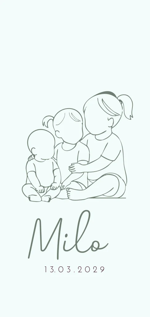 Geboortekaartje derde kindje jongen met grote zussen outline