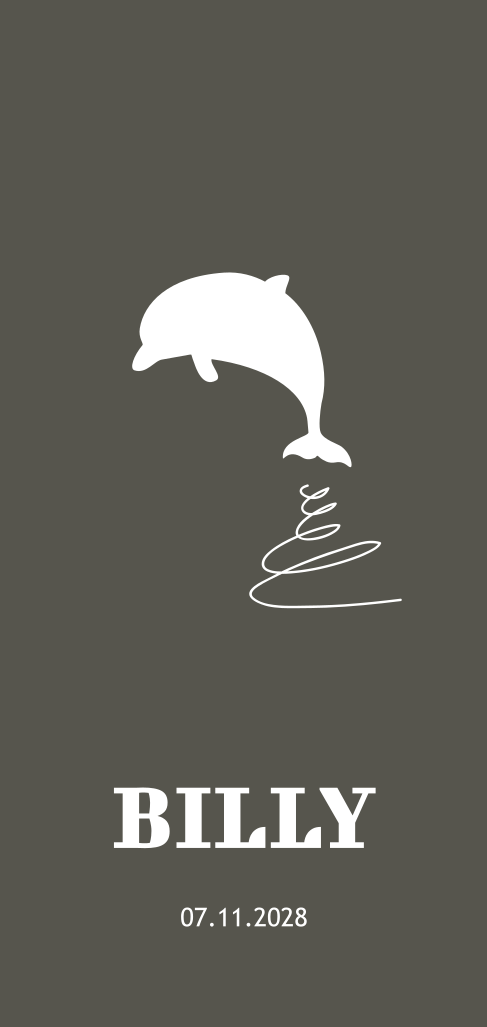 Modern geboortekaartje met dolfijntje in foliedruk op groene achtergrond. (4235)
