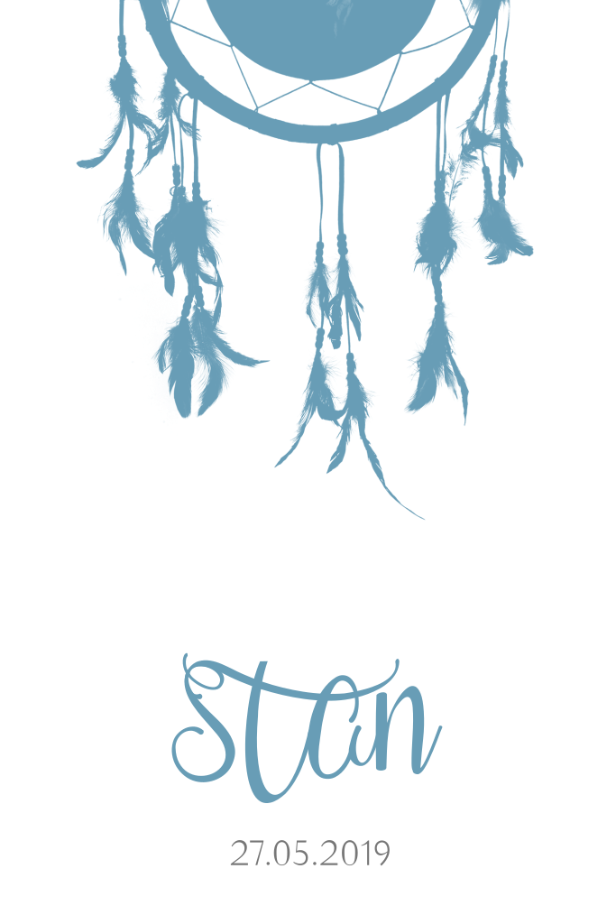 Geboortekaartje voor een jongen met veertjes en dromenvanger. (3123)