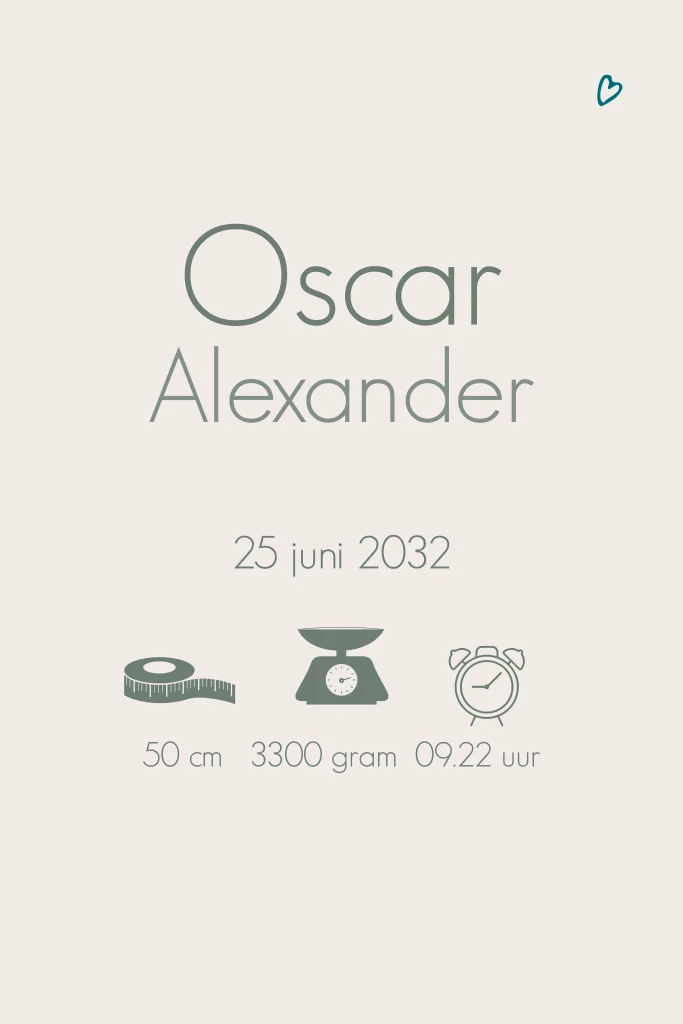 Een lief geboortekaartje voor een jongen met speelgoed in groen. Pas het ontwerp aan in onze editor.