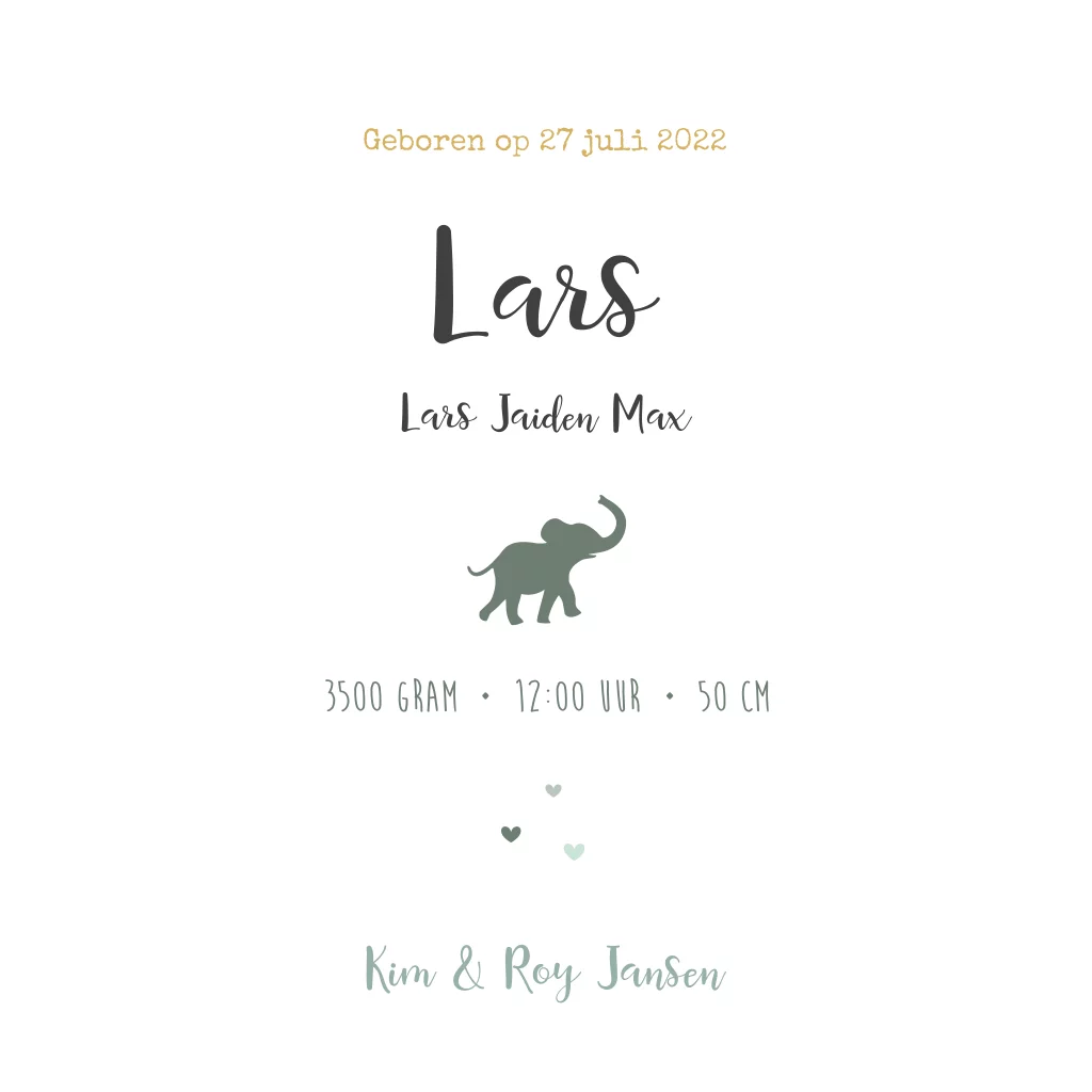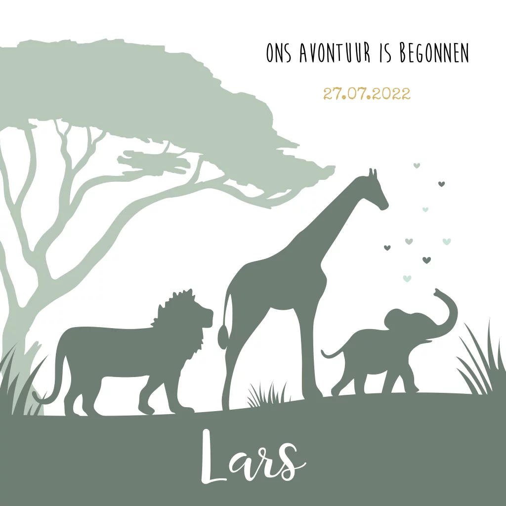 Geboortekaartje jongen jungledieren leeuw giraf olifant