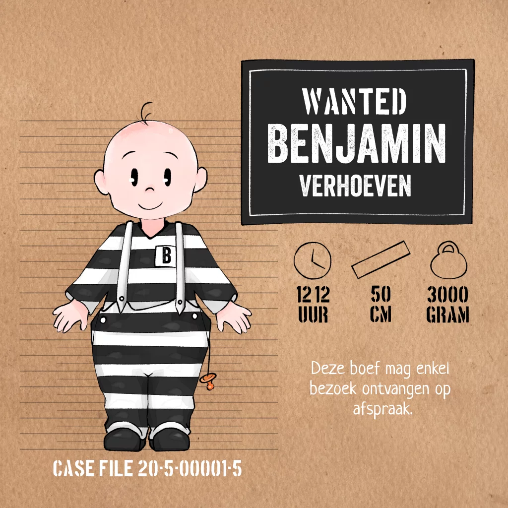 Een vrolijk en grappig geboortekaartje voor een jongen als boef