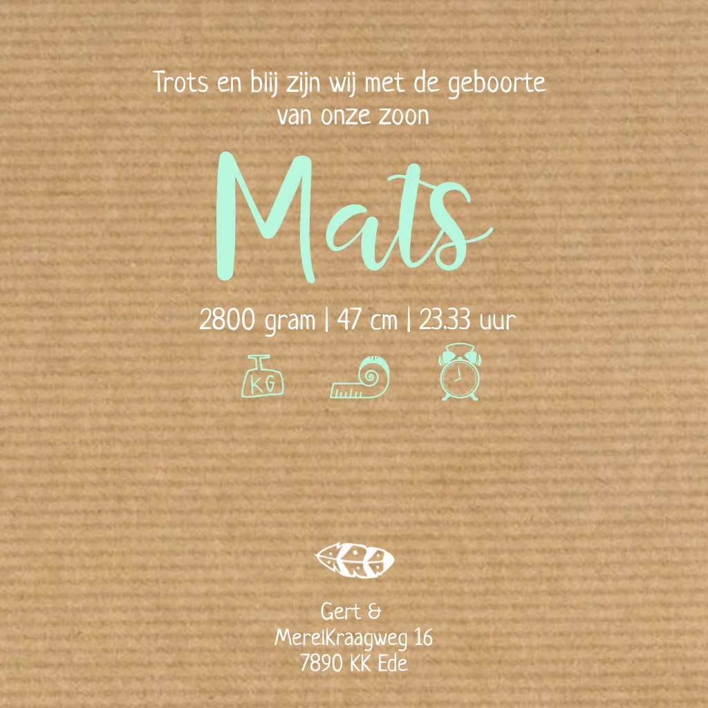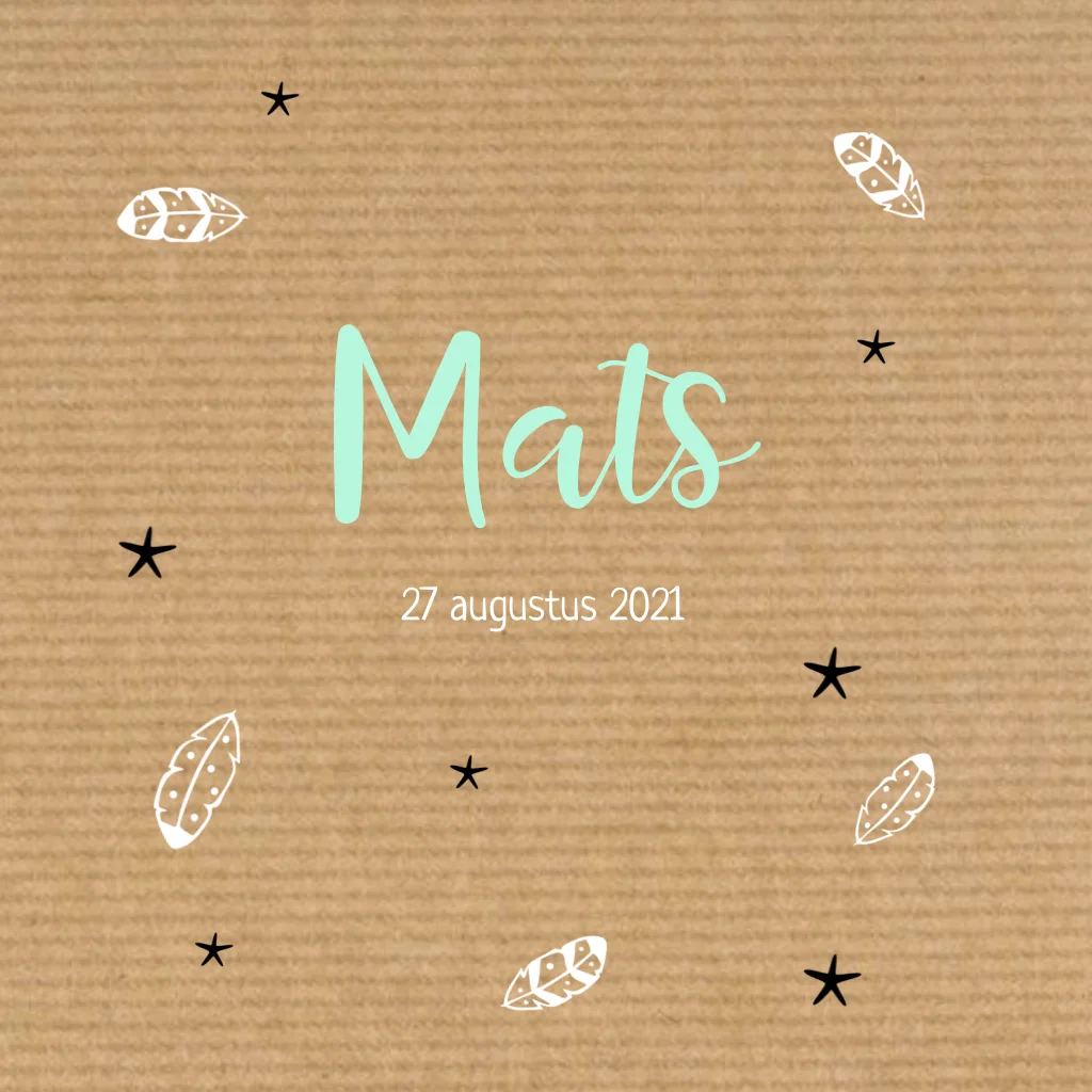 Geboortekaartje jongen kraft karton look veertjes en sterretjes. (137)