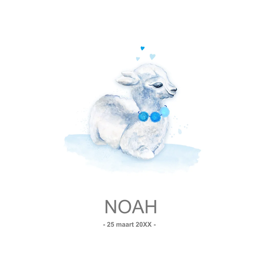 Geboortekaartje met lieve lama voor een jongetje. (3901)