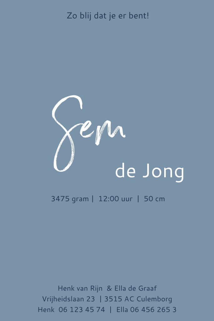 Geboortekaartje Sem voor een jongen met een foliedruk tekening van een giraffe. (4571)