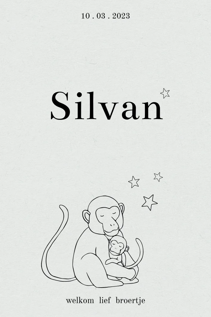 Lief geboortekaartje voor een jongen met 2 apen. (3999)