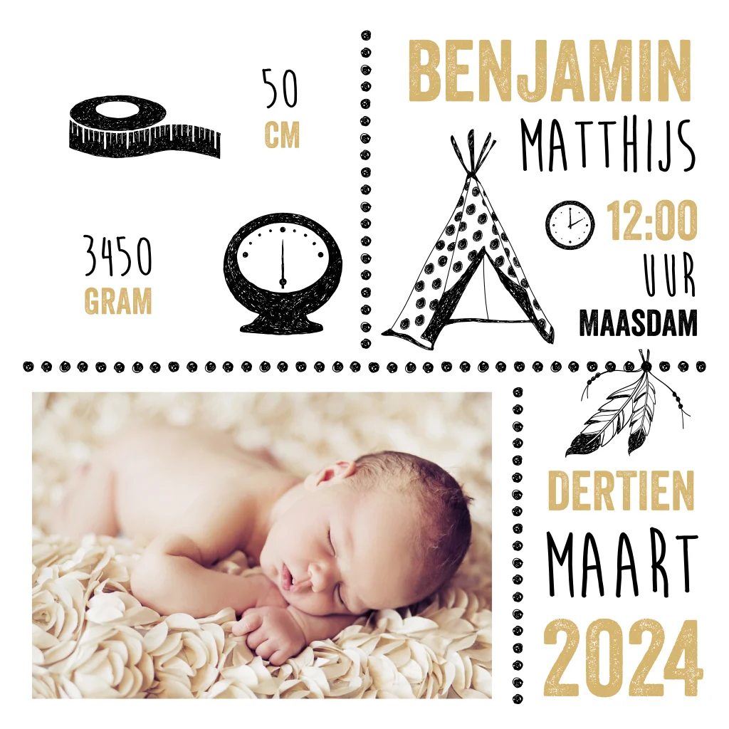Hip geboortekaartje voor een jongen met ruimte voor eigen foto en geboorte symbolen. (3929)