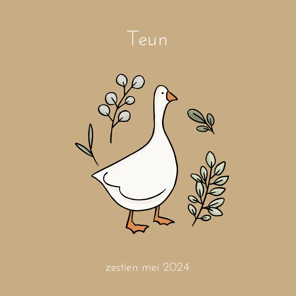 Lief geboortekaartje bruin met gans en takjes voor een jongen. (4038)