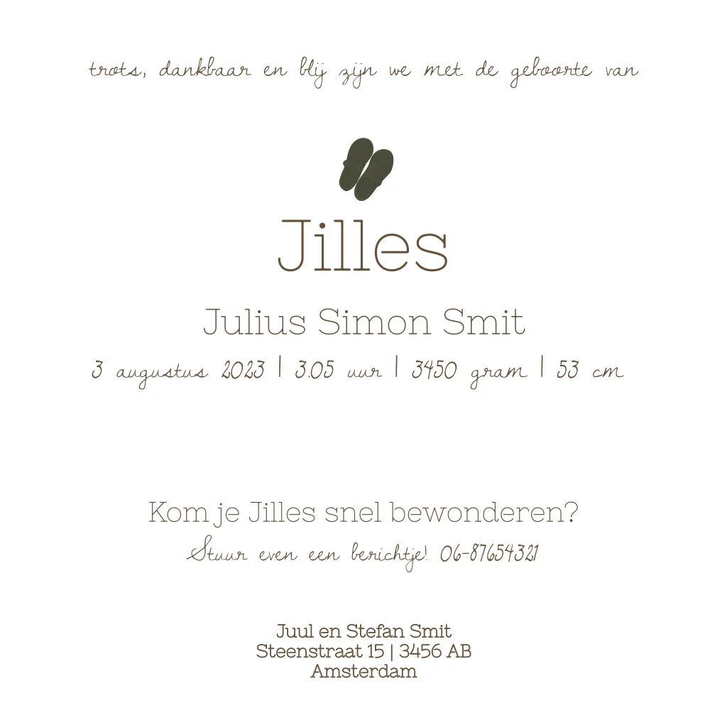 Geboortekaartje jongen met kleding
