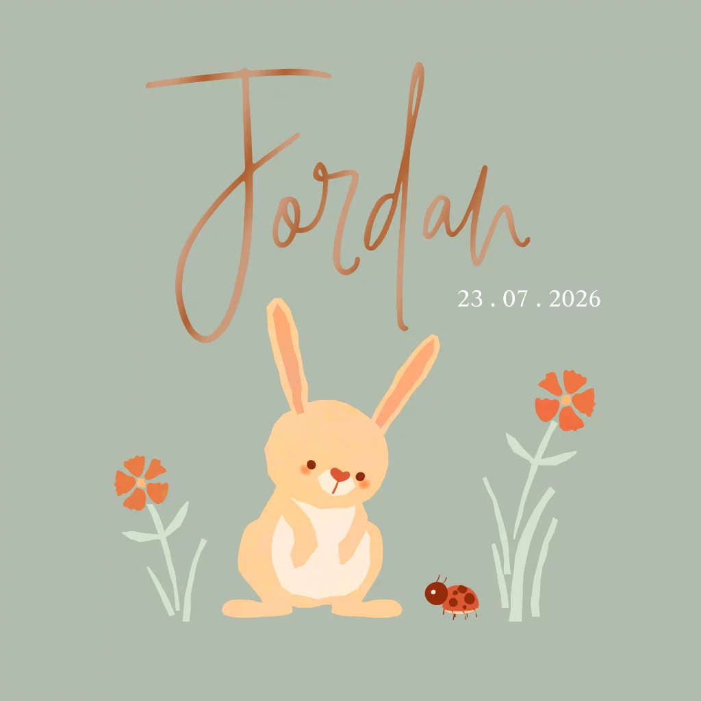 Geboortekaartje jongen met konijn en lieveheersbeestje