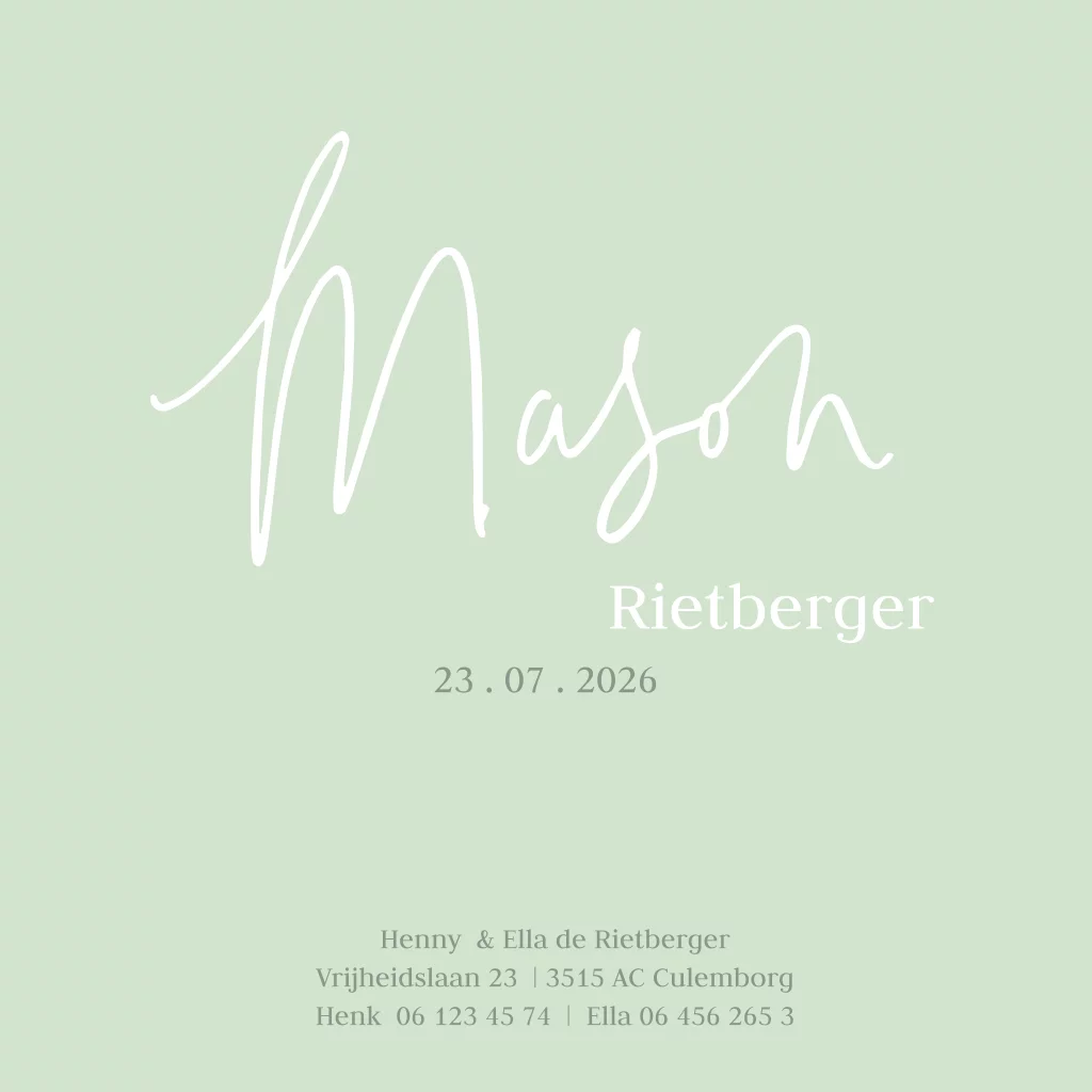 Lief getekend geboortekaartje voor een jongen met konijntje en bloemen. (4548)