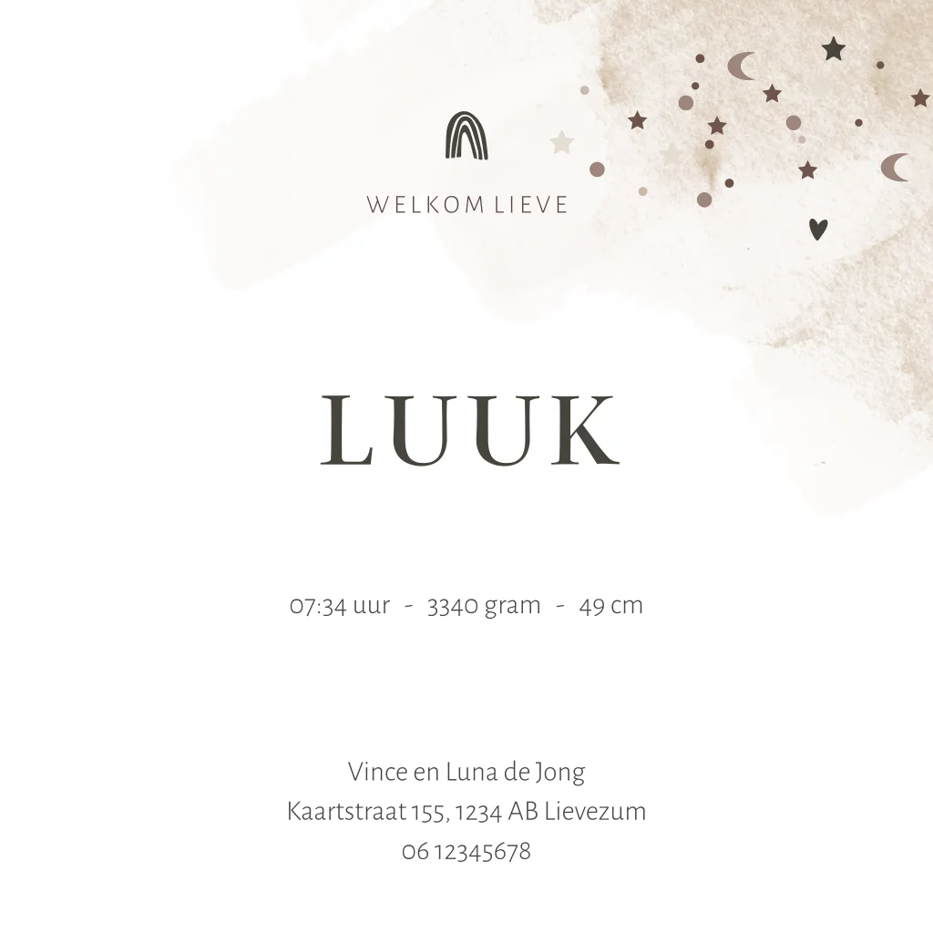 Geboortekaartje voor een jongen met regenboog en zwartfolie. (4448)