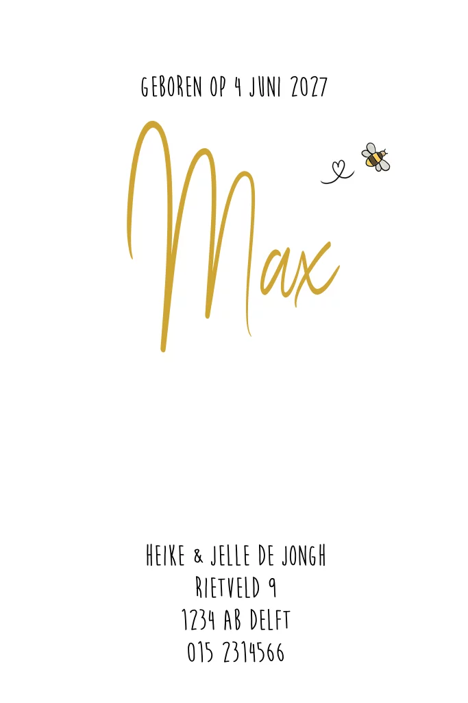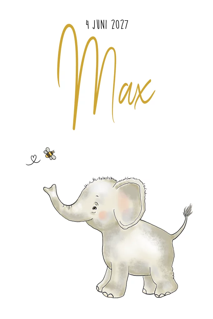 Een mooi getekend geboortekaartje voor een jongen met olifantje en bijtje. (3757)