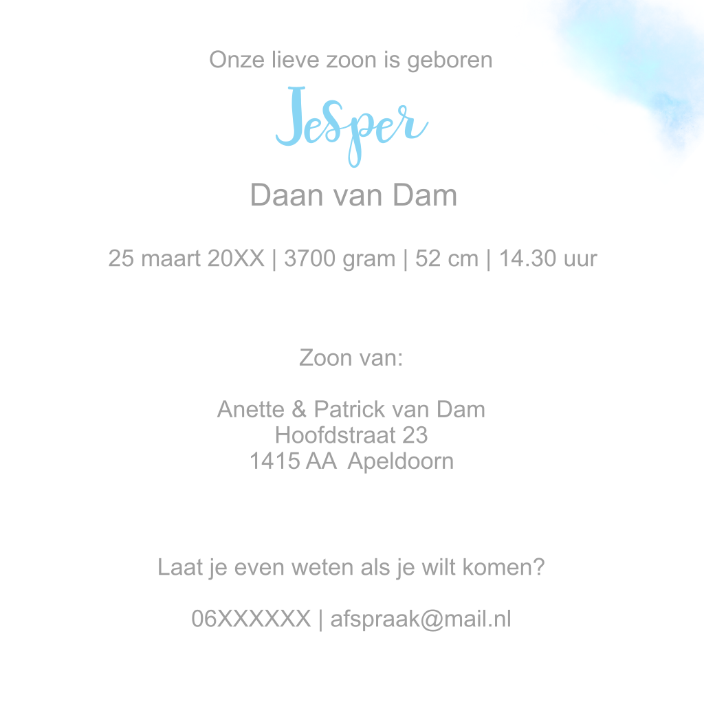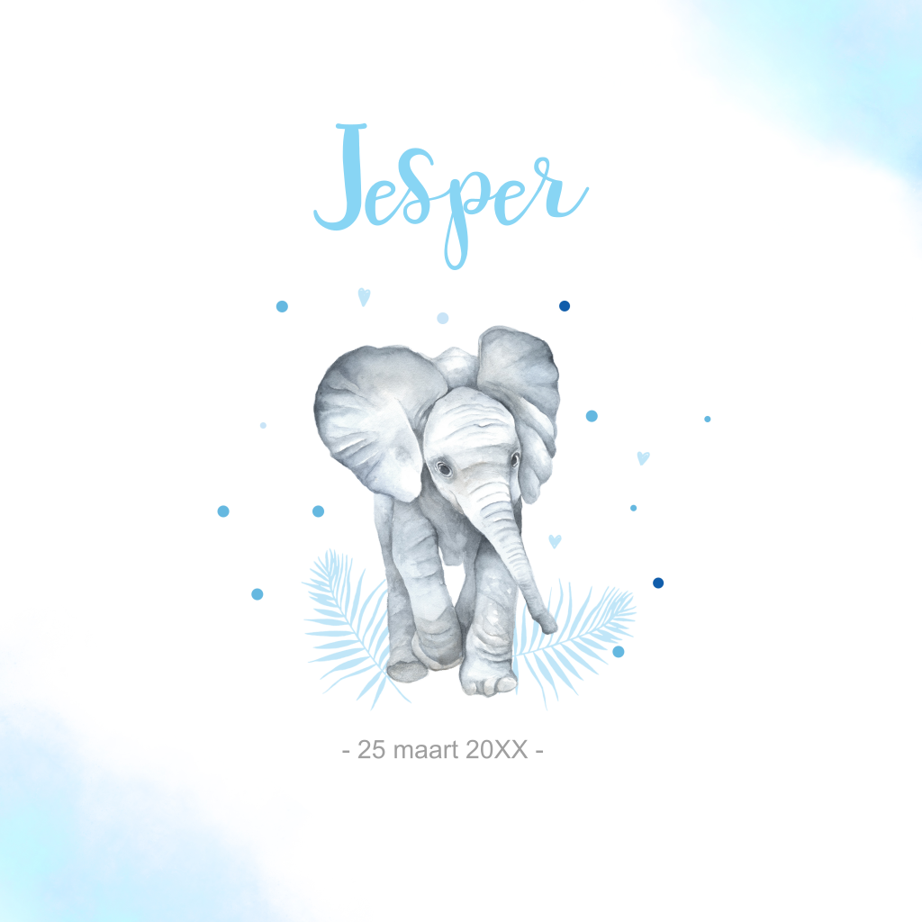 Geboortekaartje voor een jongetje met lief klein olifantje. (3571)