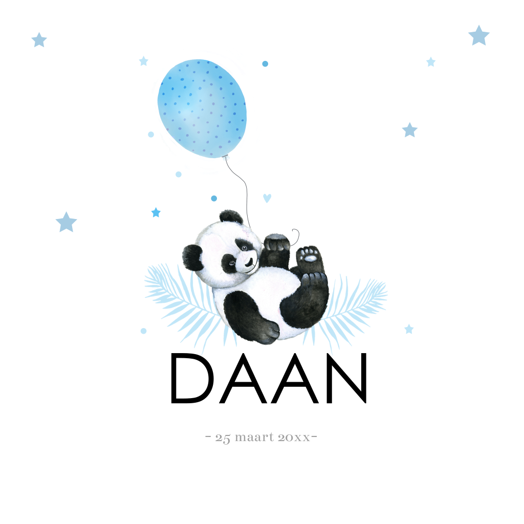 Geboortekaartje voor een jongetje met lief klein pandabeertje die een ballonnetje heeft in zijn pootjes. (3590)