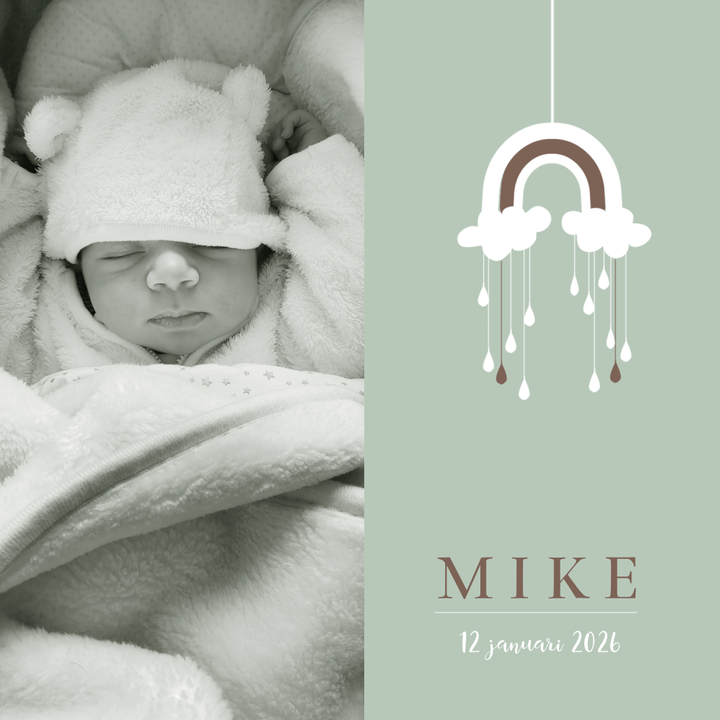 Geboortekaartje jongen regenboog mobile en foto