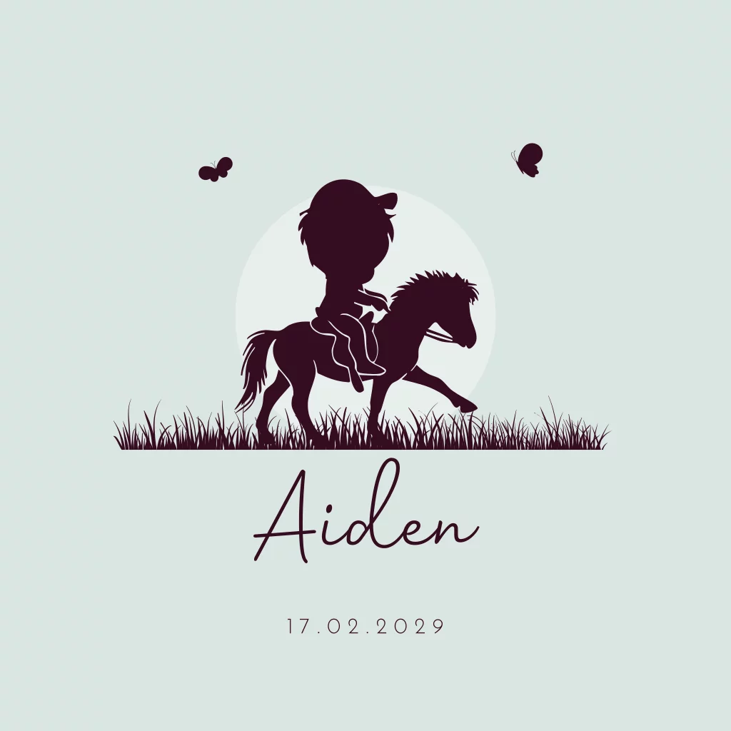 Geboortekaartje jongen met silhouet van ruiter pony paard