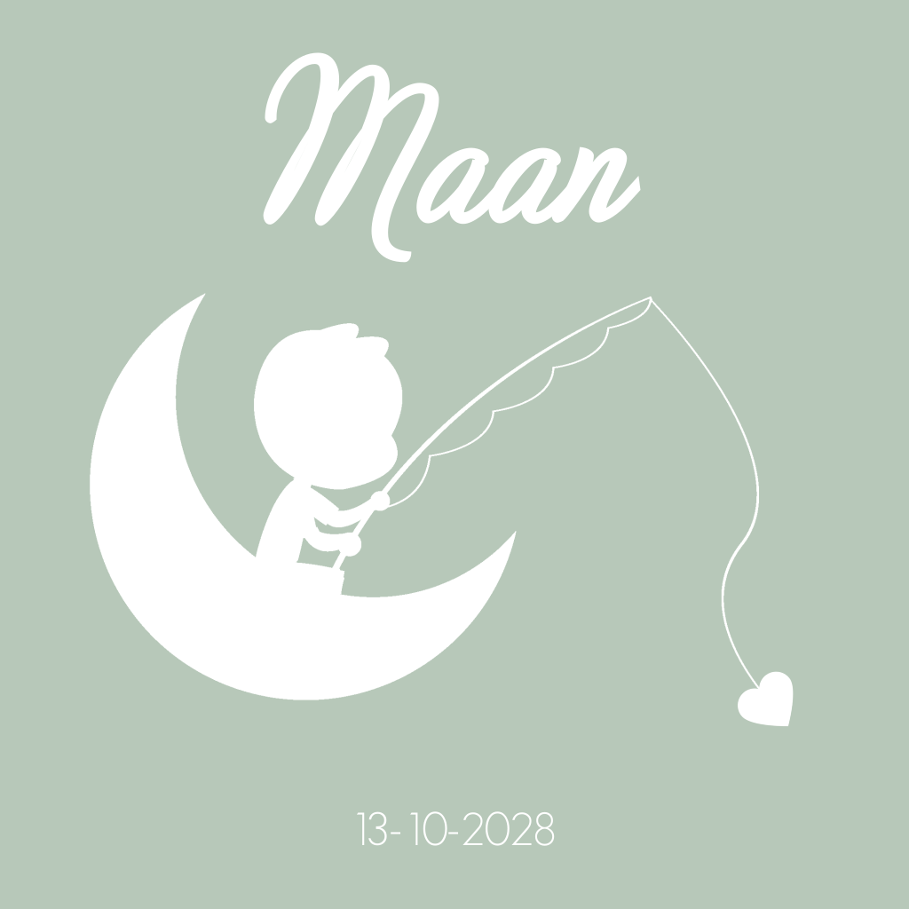 Lief geboortekaart met een silhouet van een getekend jongetje beertje dat vanaf een maan aan het vissen is. (3310)