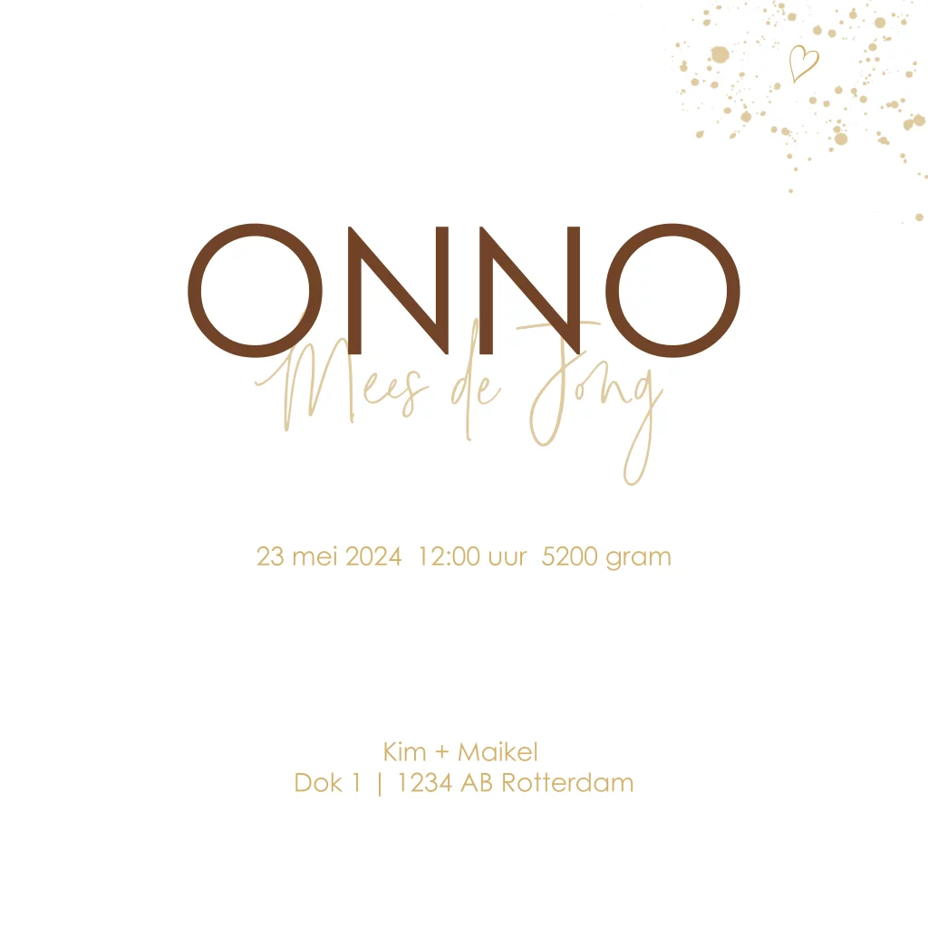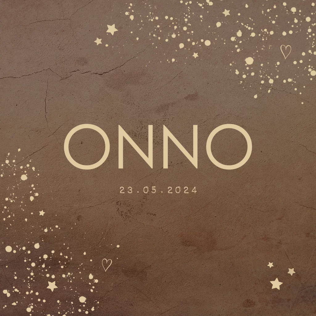 Een stoer en vintage look geboortekaartje voor een jongen. Dit in een moderne en warme kleur bruin. (4110) Geboortekaartje Onno.