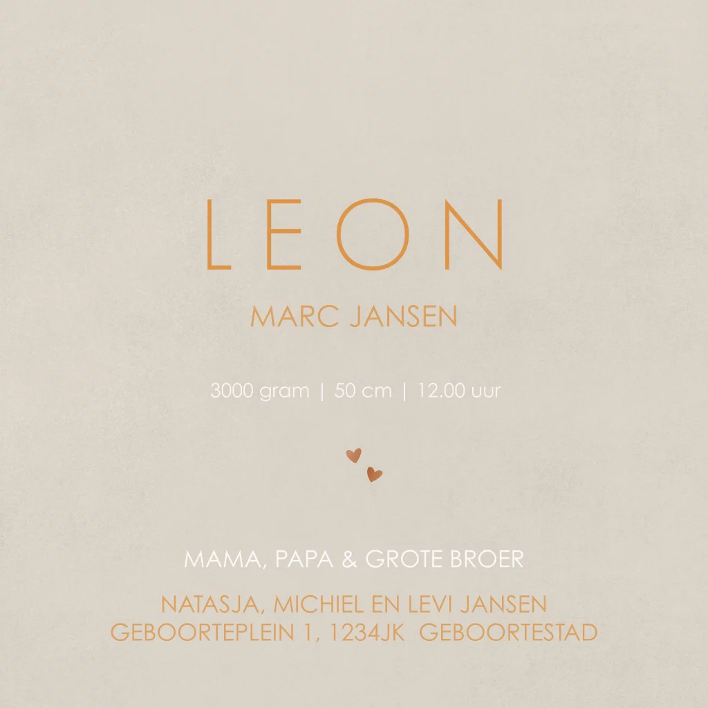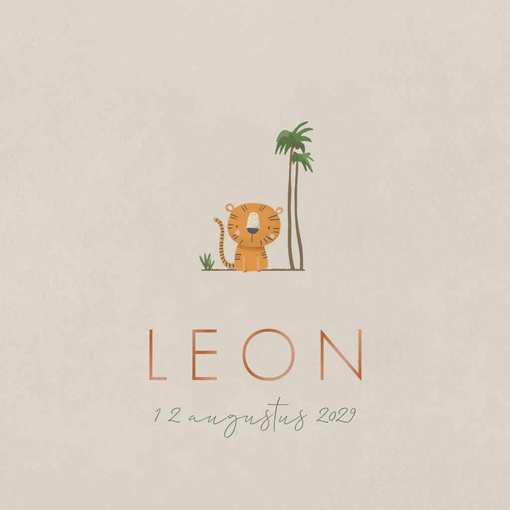 Geboortekaartje jongen Leon tijgertje met mooie achtergrond