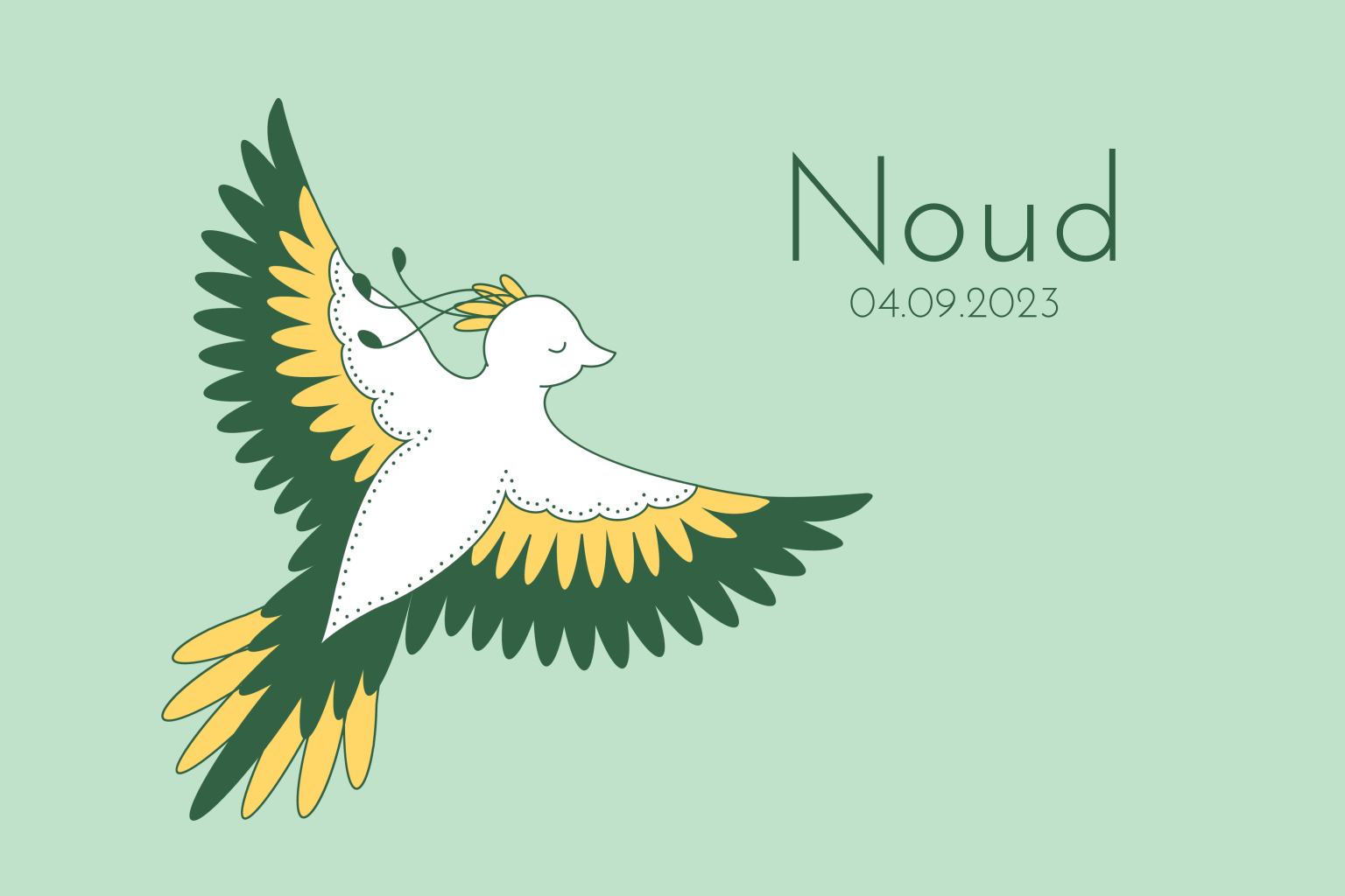 Geboortekaartje met vogel illustratie in mintgroen. Enkel kaartje. Achtergrondkleur en tekst naar wens aan te passen. (3592)
