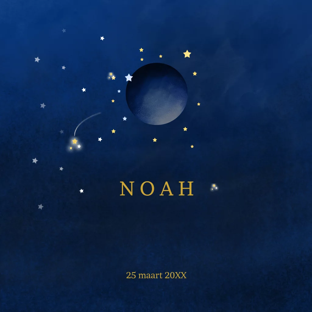 Geboortekaartje voor een jongen met volle maan en sterretjes. (3415)