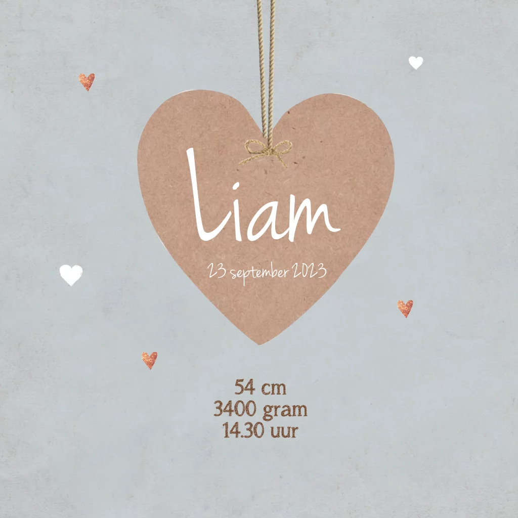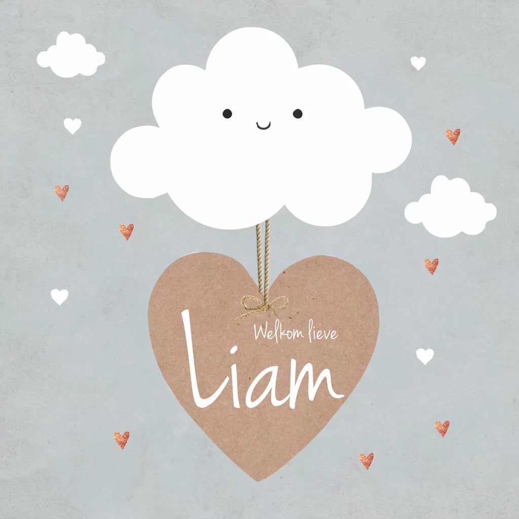 Maak deze schattige geboortekaart voor jullie kleine wondertje. Met lieve hartjes en schattige wolkjes. (161)