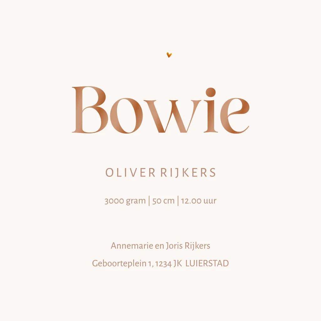 Een geboortekaartje met tekeningen van een jongen en zijn hondje in een natuurlijke bosomgeving met bomen. Pas het ontwerp aan in onze online editor.