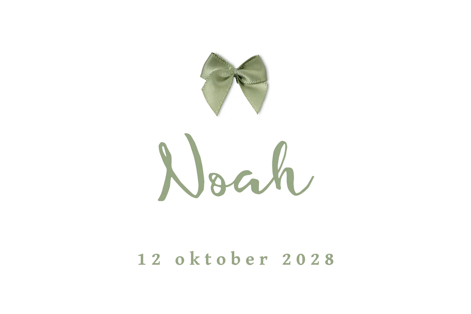 Clean geboortekaartje voor een jongen met olijfgroen strikje