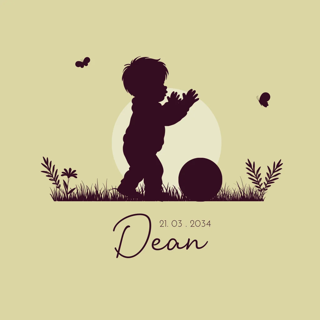 Geboortekaartje silhouet van jongetje die wandelt met een bal
