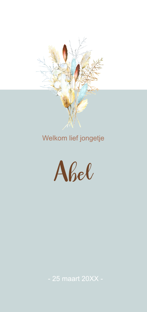 Geboortekaartje voor een jongetje met hippe droogbloemen. (3412)