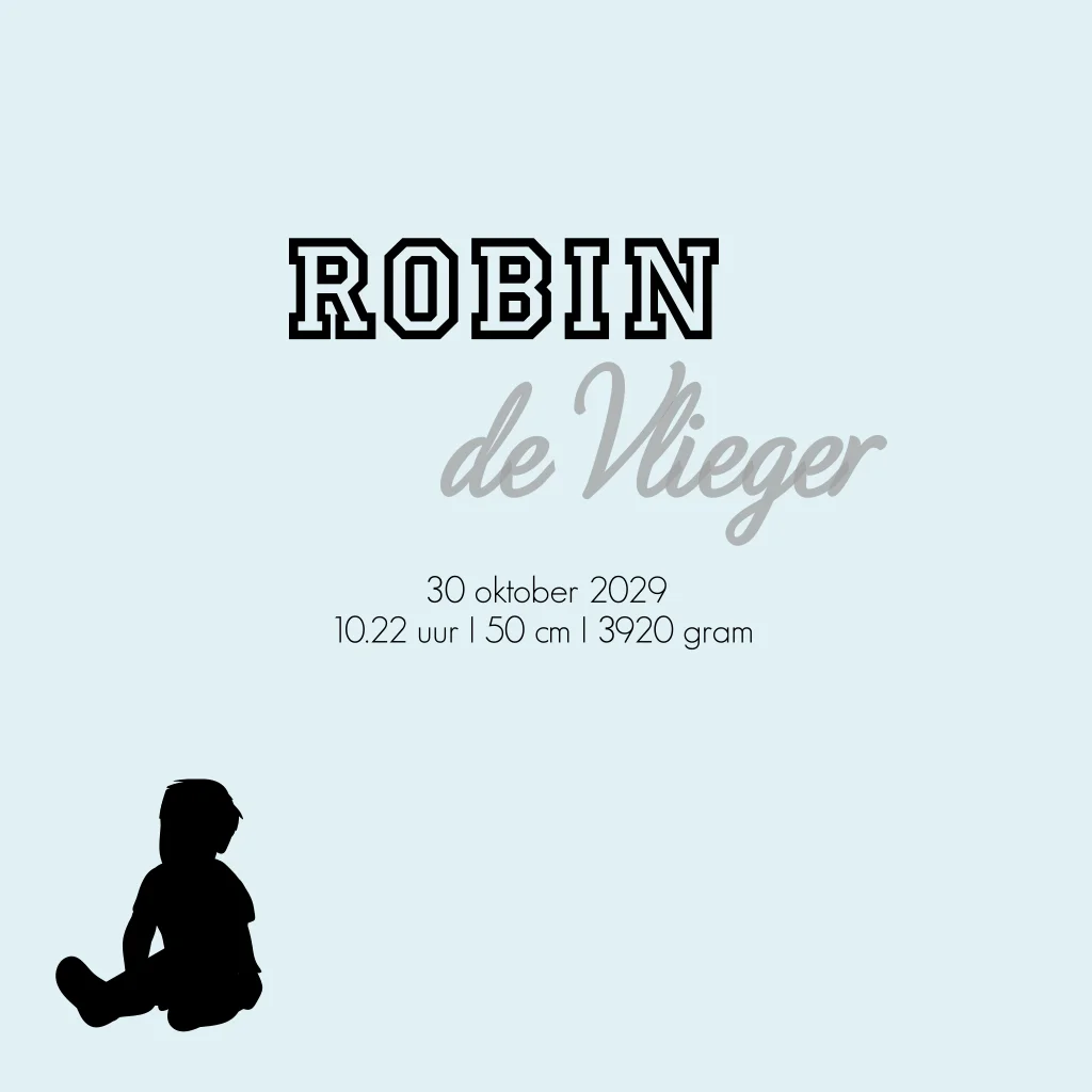 Geboortekaartje met een jongen en zijn hond, leuk voor hond-eigenaren, stoer lettertype met naam. (3858)