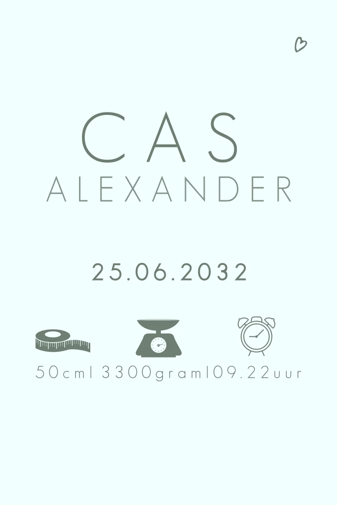 Lief geboortekaartje voor broertje met hartjes. Pas aan in onze online editor.