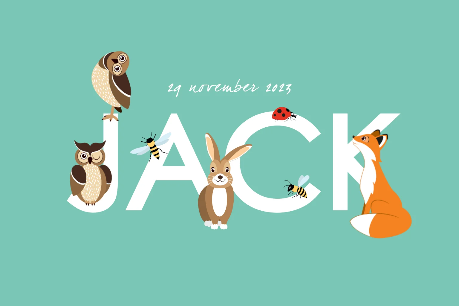 Geboortekaartje met bosdieren voor jongen. (3638)